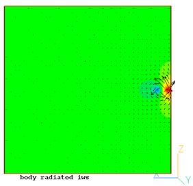 最初のシミュレーションでは、α、n = 1として線形ソース項が使用されています。結果は図3に示します。ご覧のとおり、反射波エネルギーが著しく減少しています。