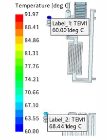 3. コールドプレートの入口側温度は60.0℃、出口側温度は68.4℃で、チャネルを通過する際の冷却液温度上昇は8.4℃です
